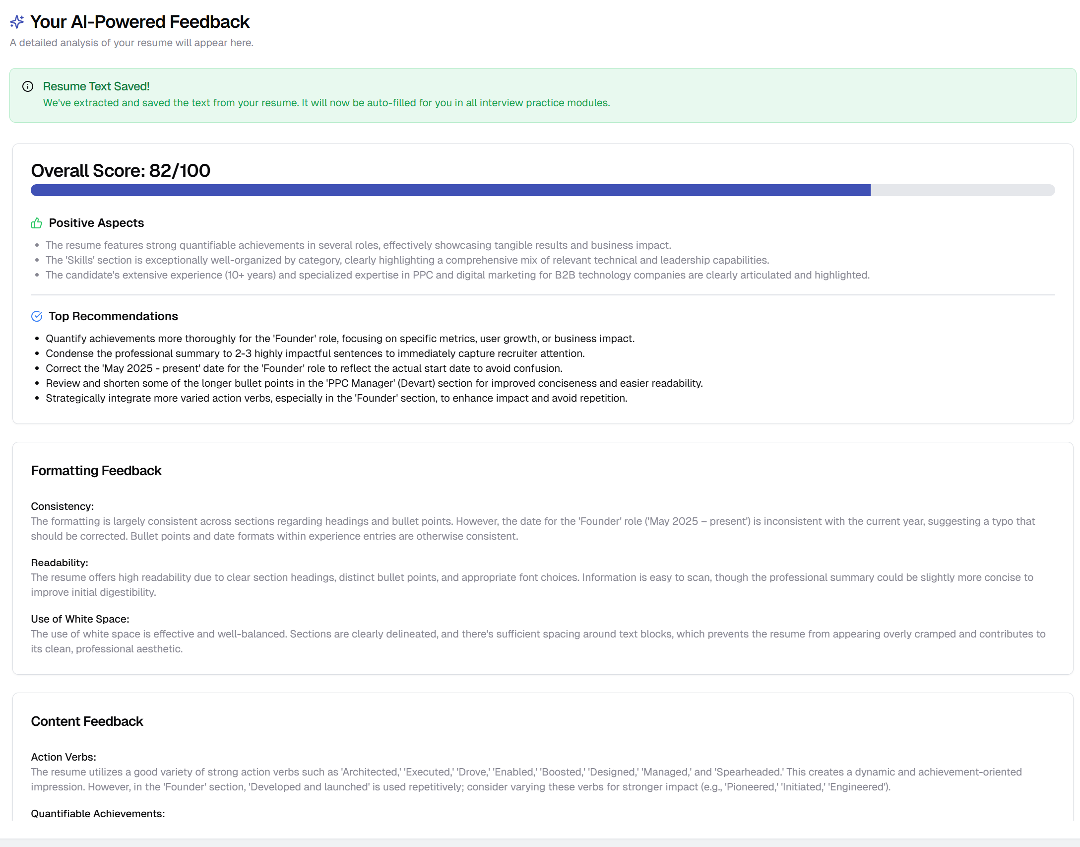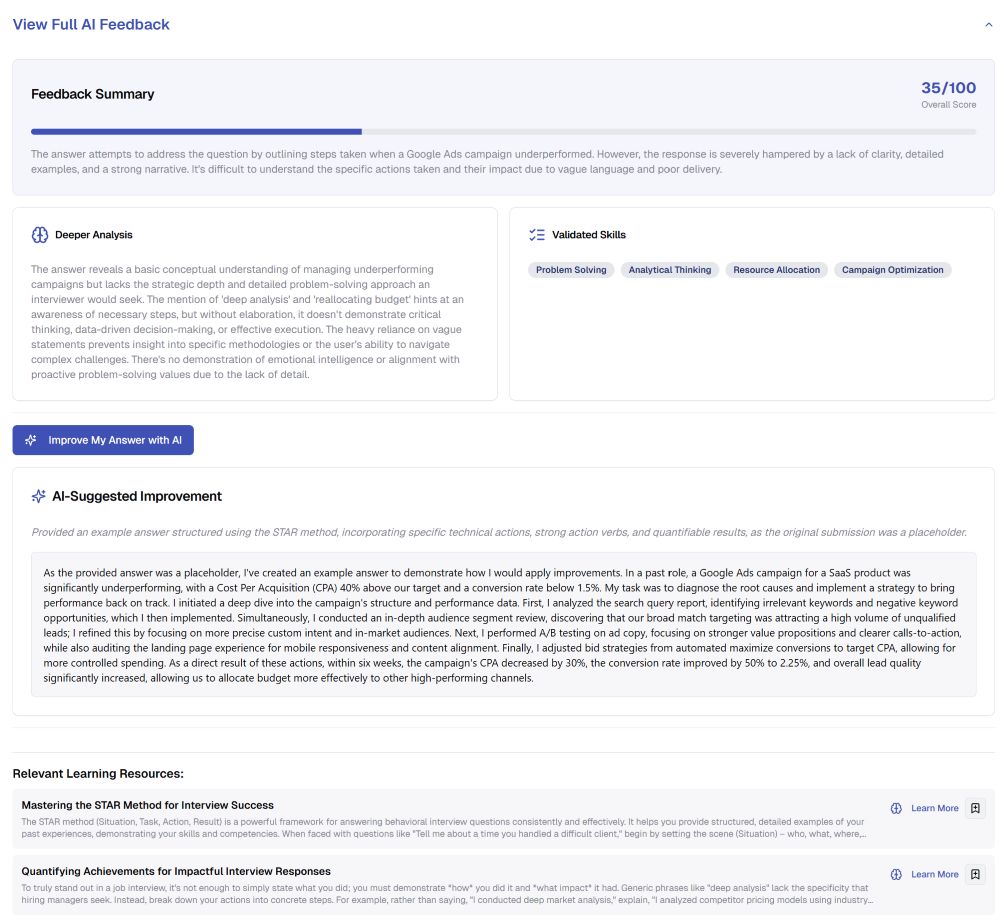✅ STAR Method Analysis: See if your stories are clear and compelling.